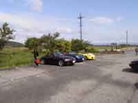 またまたまた雨です。(*_*) 今年は雨の年か・・・・・・・ 曇り空、なんとかオープンで走り出したものの・・・ 滋賀県に入る頃にはどしゃ降り!! みんな、ベチャベチャになっちゃいました。 でーも、午後に某氏が所用で別行動となったとたん青空が広がりました。 途中で、はぐれたり、交通量が多いためバラバラの走行になったり イロイロ有りましたが、久々の青空、楽しい1日でした。 (参加台数14台、19人) |