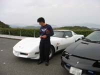 鳥羽展望台の場所で、延々と色々話し込んだあと、パールロードをさらに南下し次の見晴らしのいい駐車場に移動しました。 曇っていて海の景色はイマイチだった為か、結局そこでまた、ひたすら喋りまくりの、運転席の座り比べだのをしました。
