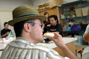 今回は梅雨のさなか悪天候が予想されますので、みんなで蕎麦打ち体験です。
